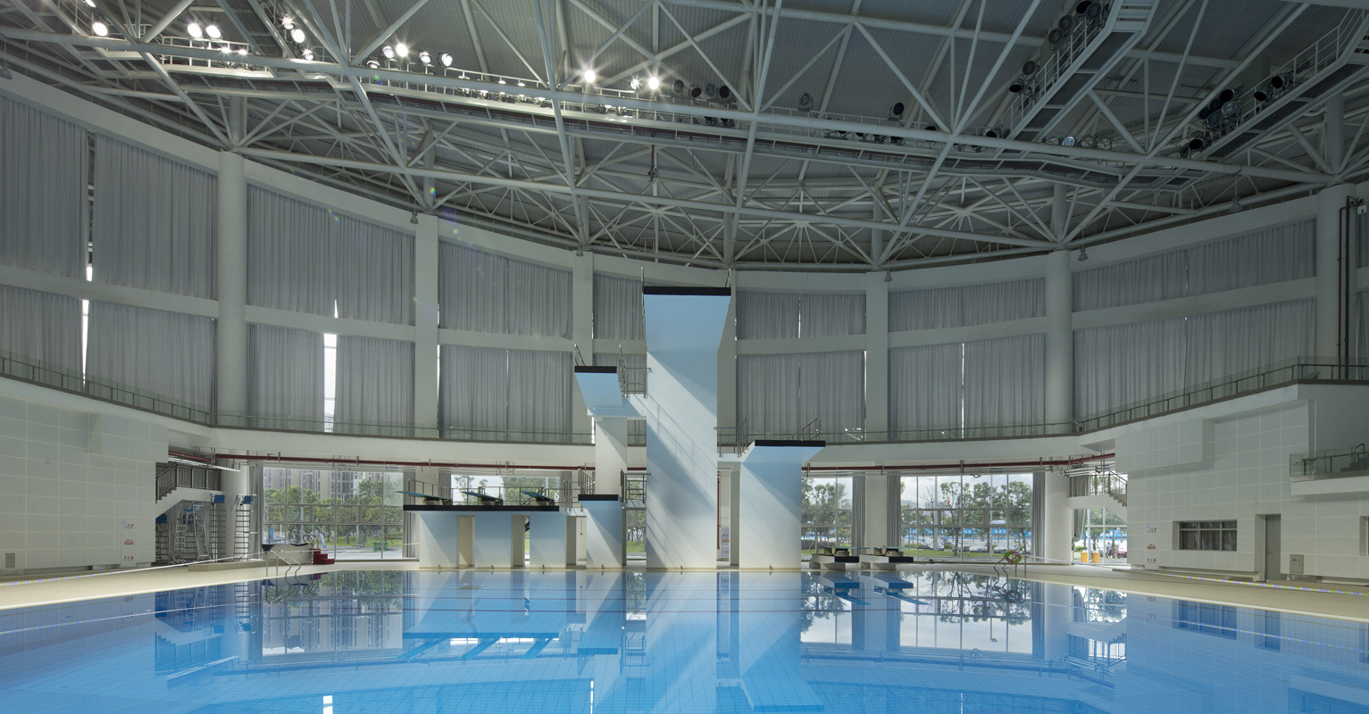 该项目要求在体育竞赛功能上能满足全国运动会、城运会和世界单项比赛的要求,同时成为满足群众体育健身、休闲娱乐、餐饮、商业购物等使用要求的城市综合体。由“一场三馆”(体育场、体育馆、游泳馆、网球馆)、配套设施办公用房及室外工程组成。三馆造型截取游泳运动员出水瞬间的形态,整个造型形象生动,气势磅礴。